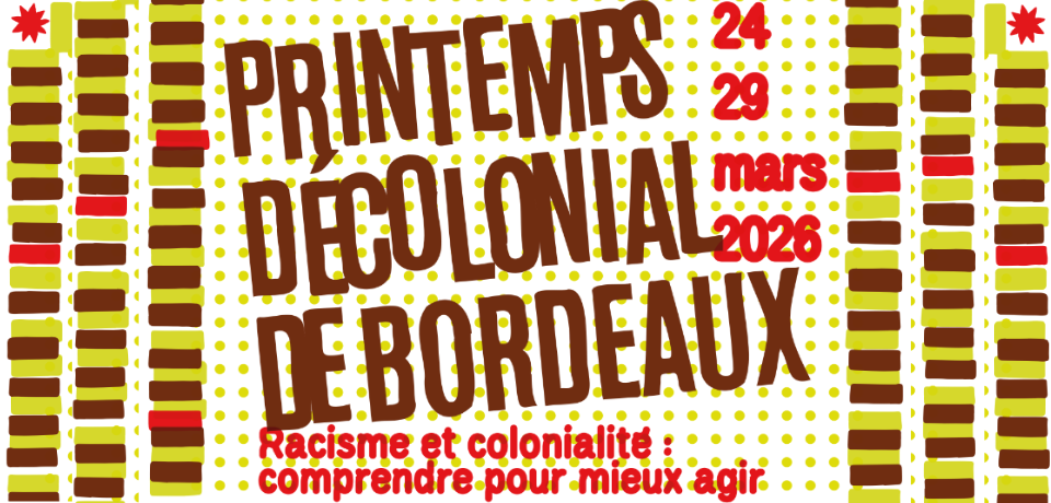 Du 24 au 29 mars 2026, le Printemps décolonial de Bordeaux invite les habitant.es de la métropole à se rassembler pour réfléchir aux traces du passé colonial dans la ville et dans notre société. Expositions, performances artistiques, conférences, tables rondes, ateliers participatifs, formations et visites guidées vous attendent. L’événement est né sous l’impulsion du Guide du Bordeaux colonial association décoloniale, du Laboratoire les Afriques dans le Monde et de l’Institut des Afriques.