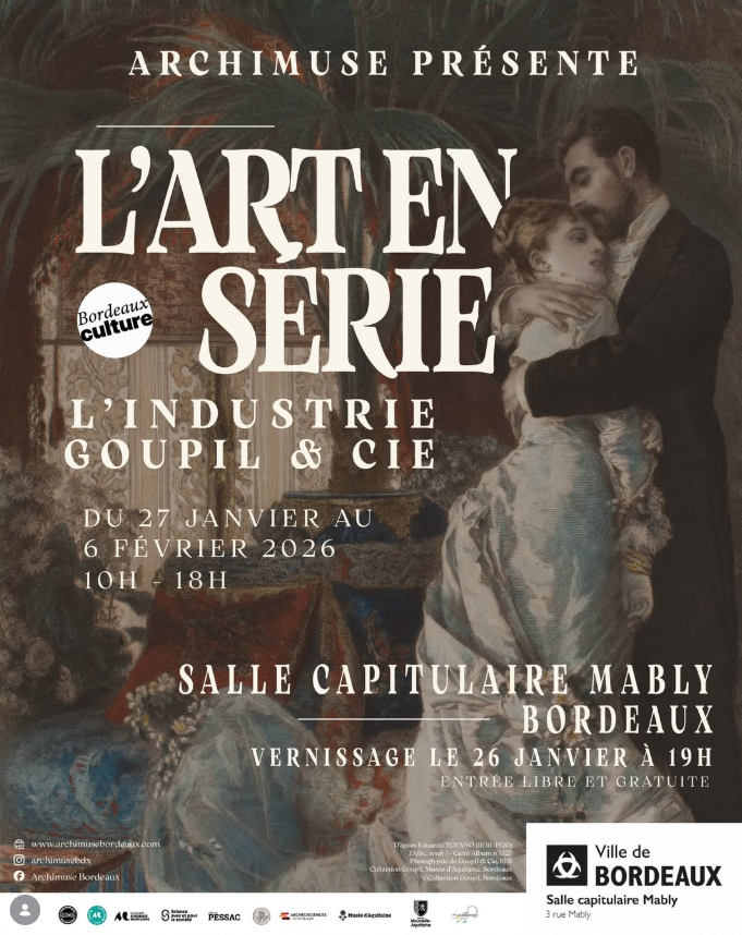 L'association du master Patrimoine et Musée, Archimuse, vous invite à découvrir sa prochaine exposition consacrée à la maison Goupil, figure majeure de l’édition d’art au XIXᵉ siècle du 27 janvier au 6 février 2026 dans la salle Capitulaire – Cour Mably, Bordeaux entre 10h et 18h. Le vernissage aura lieu lundi 26 janvier à 19h. Gratuit, ouvert à toutes et tous.