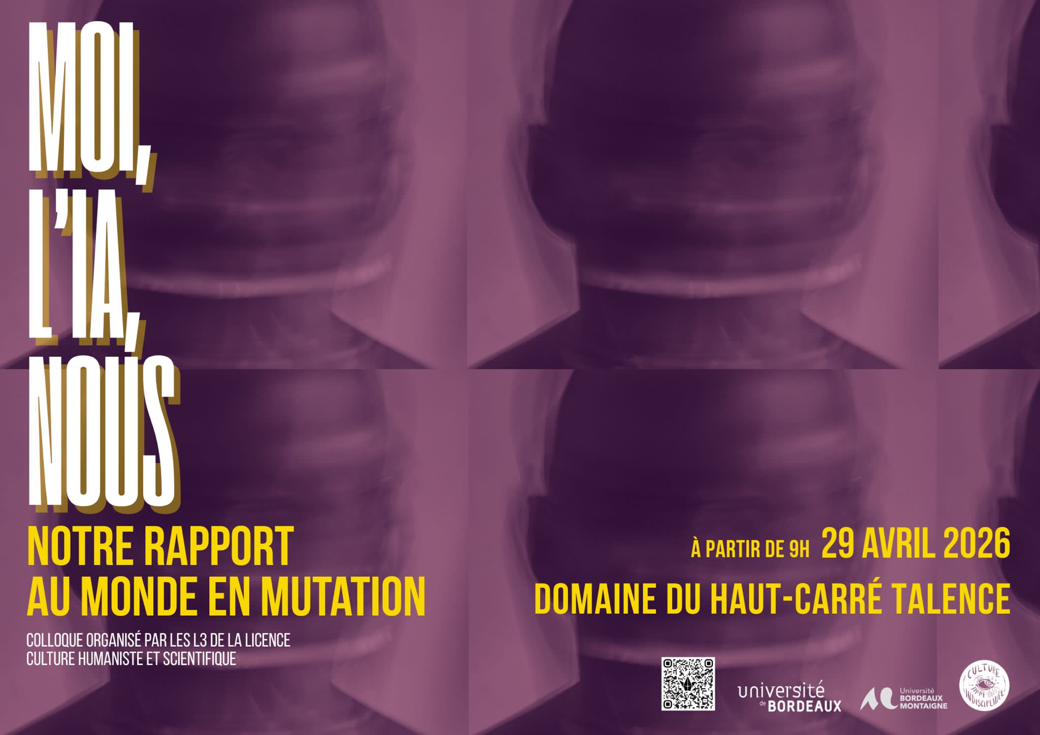 Dans le cadre de leur séminaire de recherche et de pré-professionnalisation, les étudiant·es de la licence Culture humaniste et scientifique organisent un colloque pluridisciplinaire intitulé « Moi, l’IA, Nous : notre rapport au monde en mutation ».