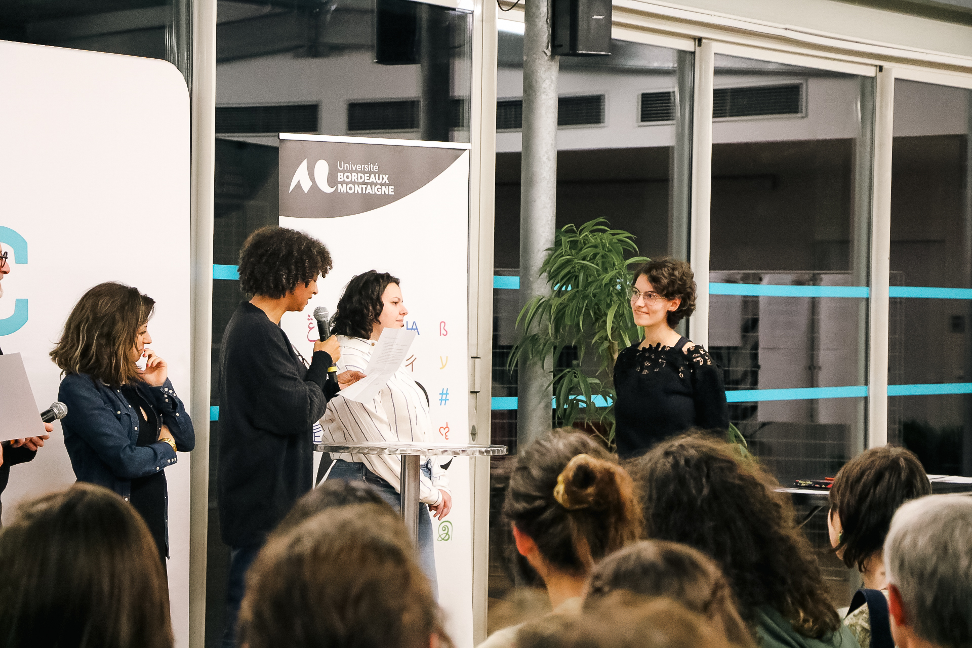 Lundi 11 décembre 2023, l’Université Bordeaux Montaigne et la Ville de Pessac ont remis les prix aux 8 lauréat·es de la troisième édition du concours d’écriture Premiers Feux. Le rendez-vous a eu lieu dans l'espace Romy Schneider, au 3e étage du centre culturel Jean Eustache à Pessac. en savoir plus +