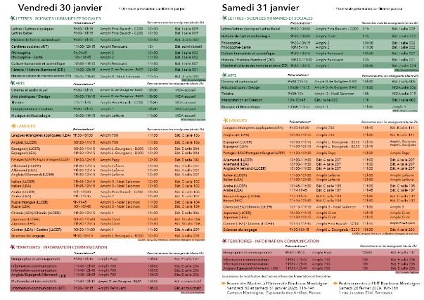LEA : présence obligatoire le vendredi de 9h30 à 10h30 / le samedi de 9h30 à 10h30 afin d'assister à la présentation du tronc commun des licences LEA avant de participer aux présentations des LV2 dans la journée.