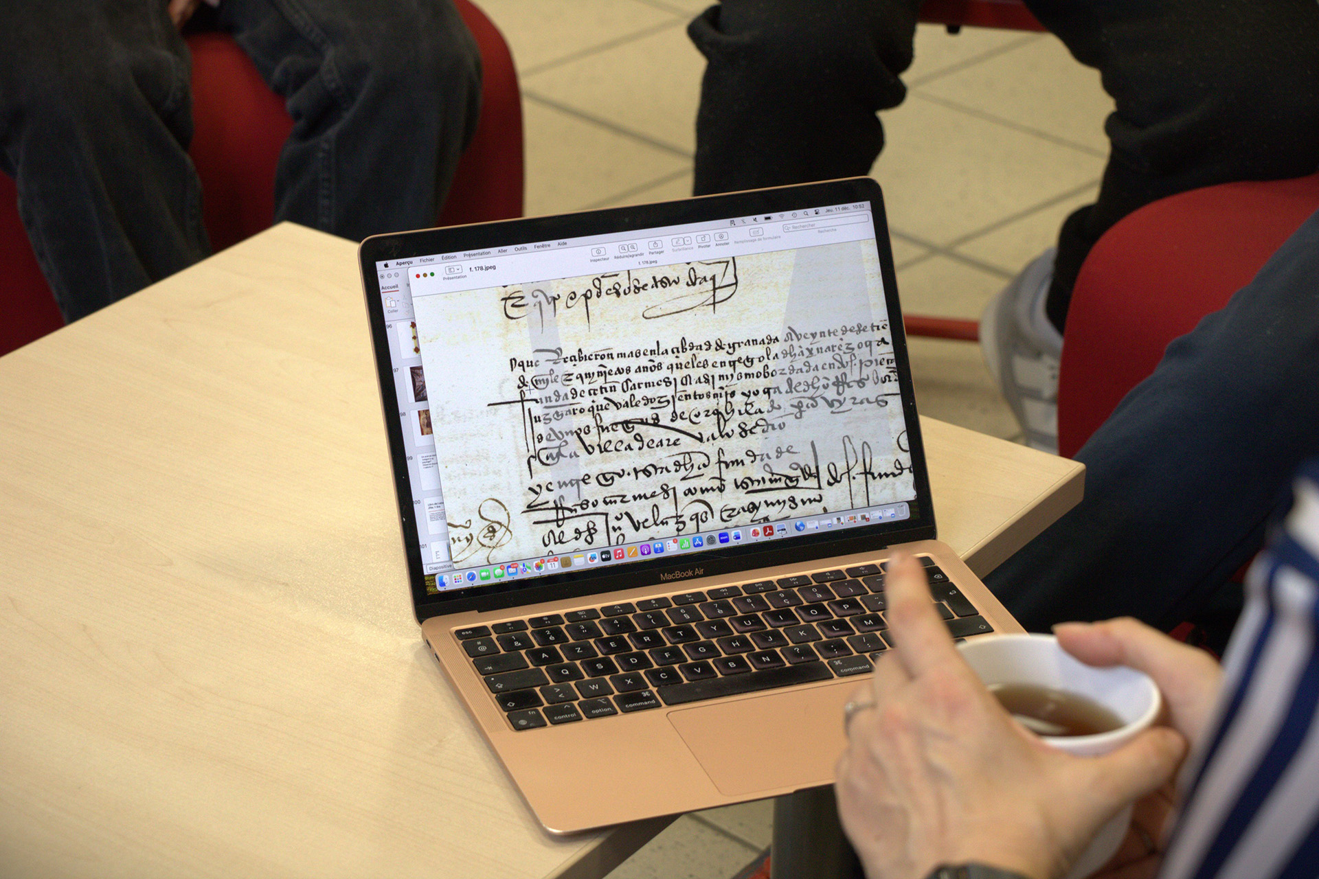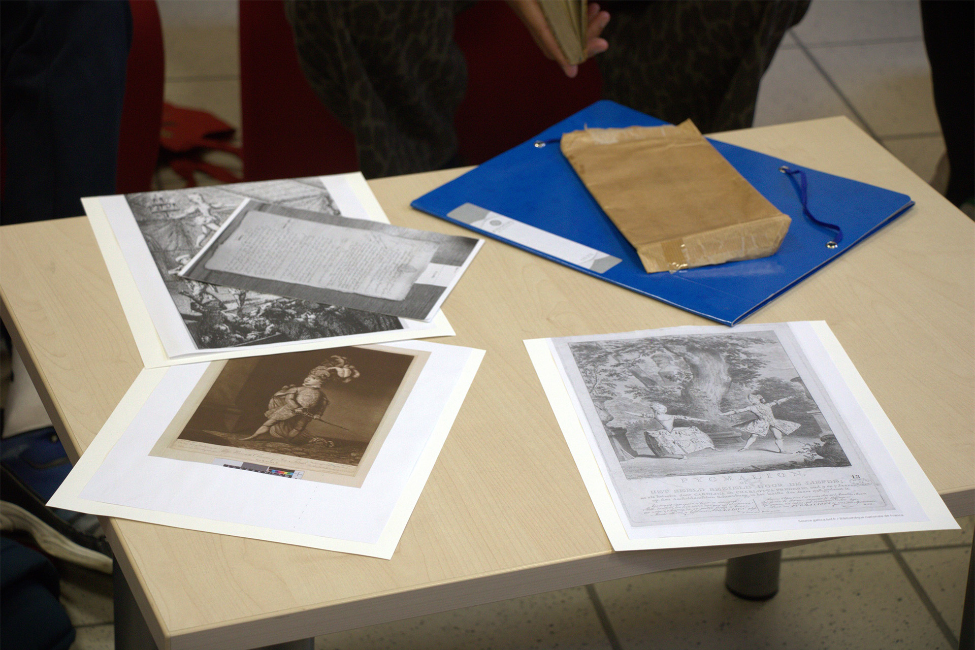 Les élèves ont ainsi découvert le parcours des six intervenant·e·s, mais aussi leurs recherches sur des sujets variés et surprenants. Ceux-ci s’étendaient de la contraception au Moyen-Âge jusqu’au lien entre le ketchup et l’immigration allemande aux Etats-Unis, en passant par l’interdiction du vouvoiement durant la Révolution française, les affiches féministes britanniques, les enfants artistes sur scène ou encore les langues minoritaires. Les collégien·ne·s ont même pu tenter de déchiffrer un manuscrit médiéval espagnol et feuilleter un livre de théâtre datant du XVIIIe siècle !