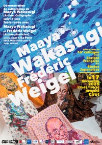 Dans le cadre de ce 16e colloque de la SFEJ, une démonstration de calligraphie sera proposée par l’artiste Maaya Wakasugi, dont le travail explore les liens entre geste et matière. Cette performance sera suivie d’une table ronde réunissant Maaya Wakasugi et l’artiste plasticien Frédéric Weigel, autour de la notion de singulier dans les pratiques calligraphiques et les démarches plastiques contemporaines.