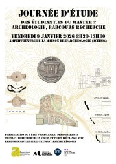 Étudiant.es de Master 2 d’ArchéologieS de l’Université Bordeaux Montaigne, nous sommes très heureux.es de vous accueillir à cette journée d’étude consacrée à la présentation de l’avancée de nos recherches dans le cadre de notre mémoire. Cette manifestation est rendue possible grâce à l’accompagnement constant de nos enseignant.es, de nos directeur.rices de recherche et de l’ensemble de l’équipe pédagogiques du Master ArchéologieS. Nous tenons à les remercier chaleureusement pour leur disponibilité, leurs conseils, leur écoute et leur exigence scientifique, qui orientent et soutiennent nos travaux. Nous remercions également l’Université Bordeaux Montaigne, L’UFR Humanités, le Laboratoire Ausonius, le Laboratoire ArchéoSciences, le CNRS et l’Inrap dont le soutien et l’accompagnement contribuent activement à la formation et au parcours des étudiant.es . Au fil des présentations, nous souhaitons montrer la diversité des thématiques abordées cette année, illustrant la richesse de la discipline ainsi que l’engagement et la curiosité scientifique des étudiant.es qui prennent la parole aujourd’hui. |