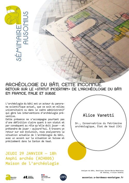 Ce séminaire proposera un éclairage sur l’évolution, le statut et les enjeux actuels de l’archéologie du bâti, avec un focus particulier sur la situation en Suisse et dans le Canton de Vaud.