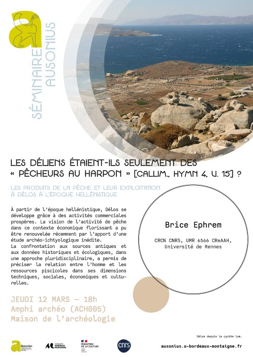 Ce séminaire propose une relecture de l’activité de pêche à Délos (produits et exploitation) à l’époque hellénistique.
